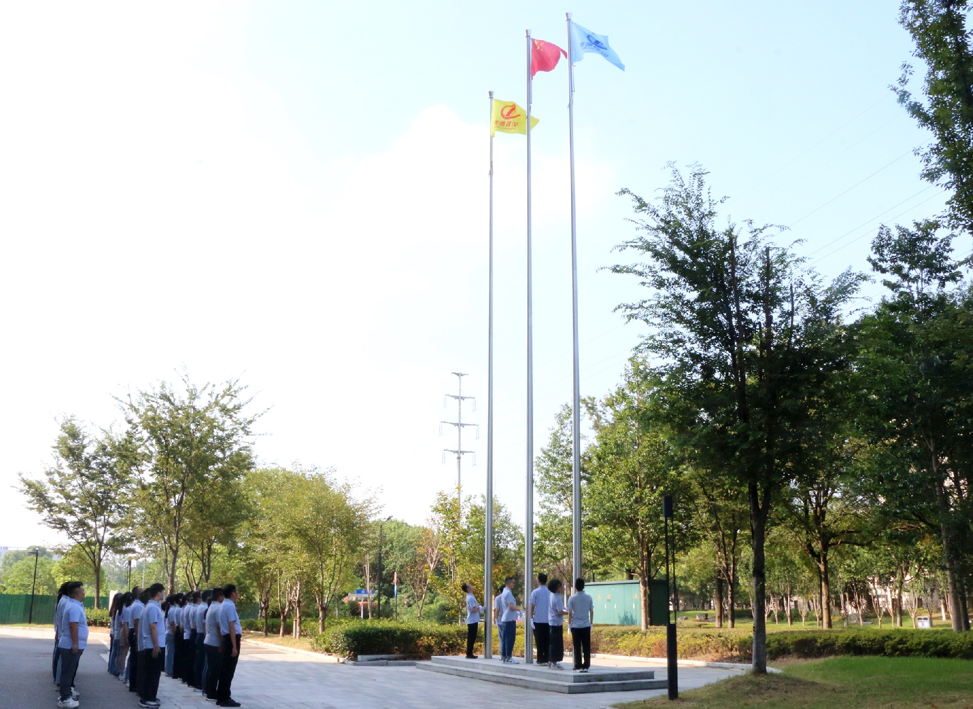 清晨,崇德建設全體黨員及員工代表整齊著裝,精神抖擻地排列在升旗臺前。隨著激昂的國歌奏響,護旗手邁著整齊有力的步伐,護衛著國旗走向升旗臺。全體員工莊嚴肅穆,面向國旗行注目禮,齊聲高唱國歌,鮮艷的五星紅旗在陽光下緩緩升起。這一刻,崇高的愛國情懷與強烈的集體榮譽感在每個人心中匯聚升騰。